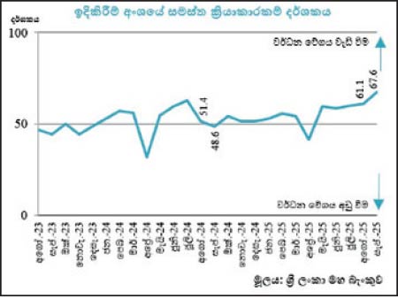 මෙහිදී මාර්ග ප්රතිසංස්කරණ ව්යාපෘති ඇතුළත්ව විවිධ ඉදිකිරීම් ව්යාපෘති ලබා ගත හැකි වෙමින් පවතින බව වාර්තා වීම මේ සඳහා හේතුව වී ඇතැයි සඳහන් වෙයි. ඒ අනුව නව ඇණවුම් දර්ශකය අගෝස්තු මාසයේ පැවැති 59.7 සිට සැප්තැම්බර් මාසයේදී 68.9ක් දක්වා වැඩි වේගයකින් ඉහළ යාමක් සටහන්ව තිබේ. එසේම ඉදිකිරීම් අංශය සඳහා ධනාත්මක අපේක්ෂා ඇති කරමින් සේවා නියුක්තිය අගෝස්තු මාසයේ පැවැති ඒකක 52.8 සිට සැප්තැම්බර් මාසයේදී 55.4ක් දක්වා ඉහළ ගොස් තිබේ. මීට අමතරව තොග මිලදී ගැනීම්ද ඒකක 58.3 සිට 56.8ක් දක්වා අඩු වේගයකින් ඉහළ යාමක් සටහන්ව තිබේ. කෙසේ වෙතත් ඇණවුමක් සැපයීමට සැපයුම්කරුවන්ට ගත වන කාලය අගෝස්තු මාසයේ පැවැති 52.8 සිට සැප්තැම්බර් මාසයේදී 52.7ක් දක්වා අඩු වේගයකින් ඉහළ යෑමක් පෙන්නුම් කර තිබේ.