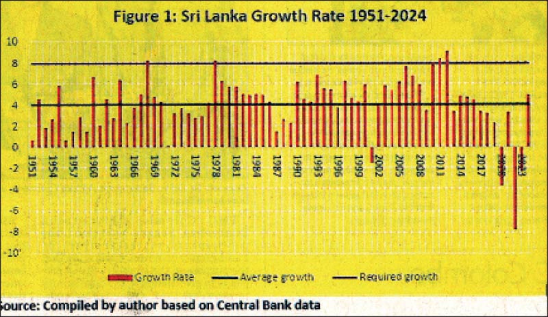 මෙම සියයට 5 (5%) වර්ධනය අනුර කුමාර දිසානායක අණ්ඩුව හඹා යා යුතු ඉන්ද්රජාලමය වර්ධන ඉලක්කයක් නොවේ. ශ්රී ලංකාව, නිදහසින් පසු අවධිය තුළ සාමාන්ය වර්ධනය අඩු මට්ටමේ පැවති රටක් වූයේය. සාමාන්යයෙන් 1950-2024 කාලය තුළ එහි වර්ධනය සියයට 4.1 පැවැතිනි.