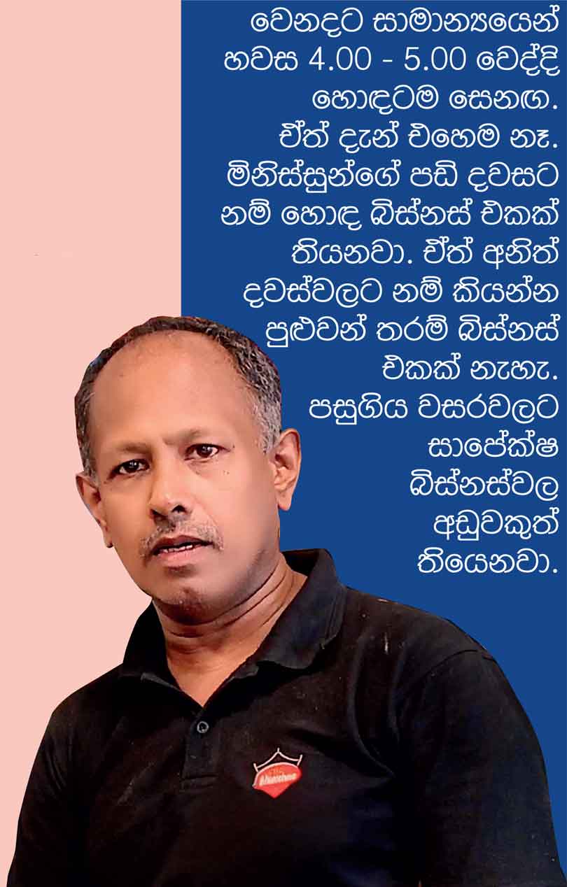 මේ දිනවල බිස්නස්වල කියන්න තරම් විශේෂයක් නෑ. මිනිස්සුන්ට පඩි ලැබෙන දවසට බිස්නස් වැඩියි. නැති දවස්වලට බිස්නස් අඩුයි.