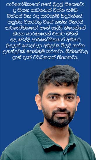 පාරිභෝගිකයෝ අතේ මුදල් තියෙනවා ද කියන සාධකයත් එක්ක තමයි බිස්නස් එක රඳා පැවැත්ම සිදුවන්නේ. පසුගිය වසරවල වගේ කන්න විතරයි පාරිභෝගිකයෝ අතේ සල්ලි තියෙන්නේ කියන කාරණයෙන් එහාට ගිහින් අද වෙද්දී පාරිභෝගිකයෝ අමතර මුදලක් යොදවලා අමුද්රව්ය මිලදී ගන්න උනන්දුවක් පෙන්නුම් කරනවා. බිස්නස්වල දැන් දැන් වර්ධනයක් තියෙනවා. ඉදිරියේ දී මේ තත්වයේ හොඳ මට්ටමක් නිර්මාණය වෙයි කියා පෙනෙන නිසා ඉදිරියේ දී එන නත්තල් සීසන් එක සහ නව වසර ඉලක්ක කරගනිමින් වෙළෙඳපොළට නව අමුද්රව්ය තොග මේ වනවිට නිකුත් කරලා තියෙන්නේ.