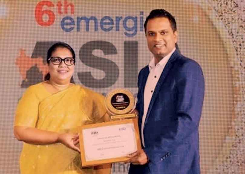 IRCL හි අධ්යක්ෂ ජනරාල් දමයන්ති ප්රනාන්දු මහත්මිය විසින් HNB ජෙනරල් ඉන්ෂුවරන්ස් සමාගමේ ප්රධාන පරිවර්තන නිලධාරී (Chief Transformation Officer) දිල්ෂාන් පෙරේරා මහතා වෙත සම්මානය පිරිනමනු ලැබූ අයුරු.