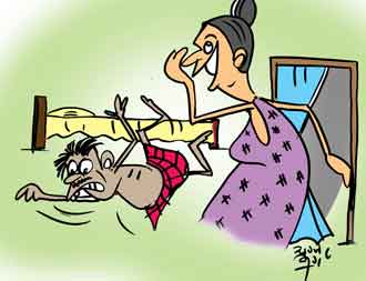 රාත‍්‍රි 12ට පමණ සිය සැමියාගේ නිදන කාමරයෙන් ‘‘දඩාස් ” ගාන ශබ්දයක් ඇසුනෙන් රත්නේගේ බිරිඳ අවදිව සැමියාගේ කාමරයට වහා දිව ගියේ ඔහුට යම් කරදරයක්වත් සිදුවුනා දැයි සිතමිණි. රත්නේ අයියාට පියවි සිහිය ආවේ සිය බිරිඳ පැමිණ ‘‘ඒයි ඒයි මොකද වුණේ..... ඇයි මේ ඇඳෙන් පහළට වැටිලා. මොකද ඔයාට වුණේ? කලන්තයක් වත් හැදුනද?” කියා විමසමින් ඒ වෙන විටත් බිම වැටි සිටි ඔහුට නැගිටින්නට සහය වූ අවස්ථාවේය.