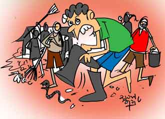එහිදී තම තමන්ගේ වැඩ ඇඳුම් ඇඳගෙන සපත්තු පැලඳගත්තෝය. මෙහිදී එක් අයකු පැලඳි සපත්තුවේ යම් දෙයක් සිරවී ඇති බව දැනී සපත්තුව ගලවා අනෙක් පස හරවා එහි රැඳී ඇති දෑ බිමට දැමීමට තට්ටු කිරීමේ දී බිමට වැටී ඇත්තේ සර්පයෙකි. එහි සිටි අය විසින් කුණකටුවා නම් වූ උග්ර විෂ සහිත සර්පයා ලෙස ඌ හඳුනාගෙන ඇති අතර සතා ලඳු කැලෑවට ඇදී ගොස් තිබේ.