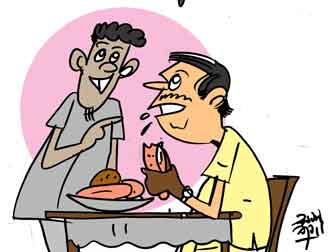 එදා ඔහු සිය සභාව ආසන්නයේ පිහිටි ආපනශාලාවට ගියේ තේ එකක් බීමටය. තේ එකක් බීමට පෙර කෑමට තමන්ලාට සභා රැස්වීම දින තේ පැන් සංග්රහයට දෙන බිත්තර පාන් එකක් ගෙන්වා ගත්තේය. එය ගෙනා වේටර් කොලුවාගෙන් බිත්තර පාන් එකේ මිල ඇසුවේ නිකමට මෙන්ය. ඔහු දන්නා වේටර් කොලුවා කීවේ මන්ත්රිතුමා මේ බිත්තර පාන් එකක් රුපියල් අසූවයි. මෙහෙන් තමයි සභාවේ රැස්වීම දවසට දෙන්න බිත්තර පාන් ගෙන්වන්නේ යයි ඔහුට වේටර් කොලුවා කීවේද නිකමට මෙන්ය. හා එහෙම ද මන්ත්රීවරයා කොලුවාට කීවේය.