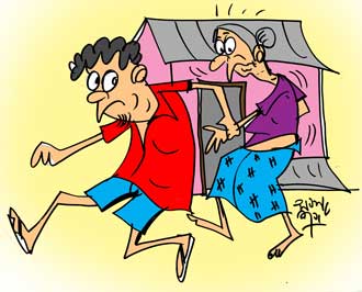 එහිදී දැන ගන්නට ලැබුණේ එම නිවසේ සිටි වියපත් මව පුතු මොවුන් එන නිසා පිටමං කර ඇති බවයි. ඇය සිටින්නේ නුදුරින් පිහිටි නිවසක බවද ඔවුහු දැන ගත්හ.