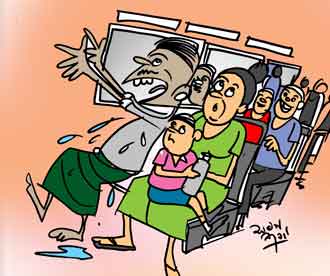 අනේ අපොයි රං මැණිකො වහිනව නේද? අපරාදෙ මාගලේ වී ටික. භූතයගෙන් කපල ගෙට ගත්ත අමු වී ටික බං නින්දෙන් පිබිදුන ඔහු කෑමෝර දෙන්නට වූයේ බස්රියේ සිටි සැවොම පුදුමයට පත් කරමින් මෙන්ම සිනාවට ලක් කරමිනි. වී වේළන ගමන්ද මාම ආවෙ? රංමැණිකෙ වේළලා තියන්නෙ නැතැයි දැන් ඉතින් කෑ නොගහ යං. කොන්දොස්තරගේ කතාවටද සැවොම සිනා වූහ.