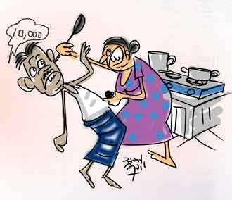 ප්රශ්නයකට තිබුණේ ඔහුගේ මේ සමාජ සේවයට භාර්යාවගේ ඇති දැඩි අකමැත්තය. ඇය ඔහු කරන මේ අමිල සමාජ සේවාව පහත් කොට සැලකුවාය. එය මදිකමක් ලෙස දැක්කාය. මේ නිසාම මේ දෙන්නා අතර අඬදබර ඇති නොවුණාම නොවේ. ඒ අවස්ථාවලදී ඔහු විහිළුවක් කොට ඇයගේ ඇසුරෙන් මිදී යන්නේ භුමිතෙල් ගෑ ගැරඬියෙකු ලෙසය. මේ නිසාම දෙන්නාගේ අඬහැරය ගුටි කෙළියක් දක්වා වර්ධනය නොවීය.
