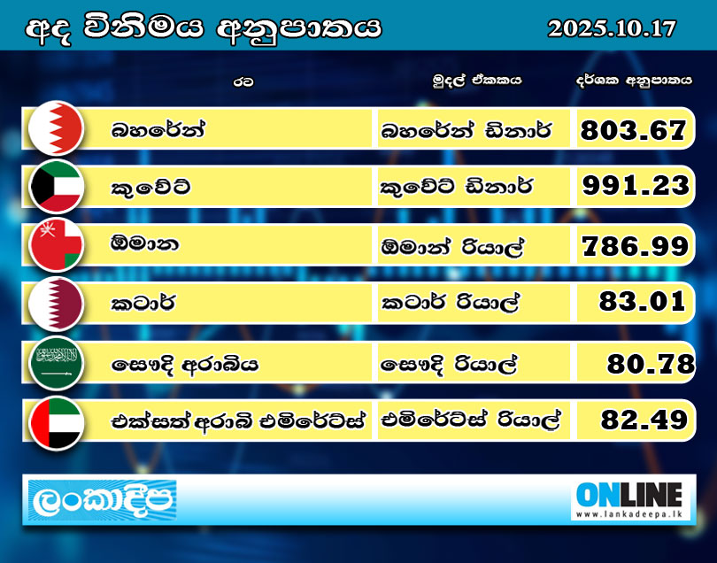 අද විනිමය අනුපාතය : 17 ඔක්තෝබර් 2025