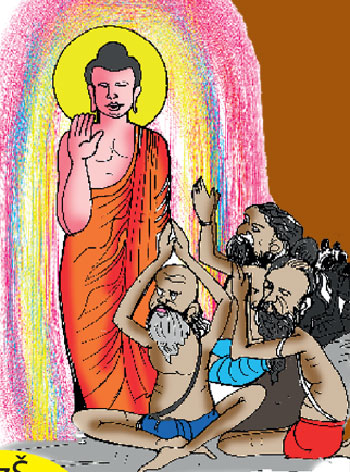 එක් දිනක් පුරුදු පරිදි රාත්රී කාලයේ බණ ඇසීමට දෙව්රම් වෙහෙරට ගිය බමුණු තෙමේ ධර්මයට සවන් දෙනුයේ අසන ලද දහමින් මනාව ප්රසාදයට පත්ව ධර්මයට ධර්ම පූජාවක් සිදු කිරීමේ අදහස ඇතිව කිසිවක් නොවූයේ කුමක් පුදම්දැයි ලතවීමට පත් වූයේය. එසේ ලතවෙමින් ධර්ම ප්රීතියෙන් සිටි බමුණු තෙමේ තමා සතු එකම සළුව ධර්ම පූජාවක් ලෙස පූජා කිරීමට සිතුවේය. එකණෙහිම නැවත ඔහුට කල්පනා වූයේ තමාටත් බිරිඳටත් නිවසෙන් බැහැර වීමට ඇති මෙම සළුව පිදීමෙන් සිදුවන පාඩුව පිළිබඳවය. එහෙත් නැවතත් එම සළුව පිදීමේ අදහසත් ඉන් සිදුවන පාඩුවත් සිතමින් පුදම්දෝ නොපුදම්දෝ යනුවෙන් මසුරු සිතුවිලි සමග මානසික යුද්ධයක නියැළුණු දිළිඳු බමුණු තෙම මසුරු සිත් පරදවා සකසා ගත් සිතින් යුතුව උතුරු සළුව මැනැවින් නවා වහ වහා ගමන් කර ධර්ම පූජාවක් ලෙස පූජා කර “දිනුවෙමි දිනුවෙමැයි” තෙවරක් හඬ නගා ප්රකාශ කරන ලදී. මෙම දම්සභා මණ්ඩපයෙහිම ධර්මය අසමින් සිටි රටෙහි රජතුමා වූ කොසොල් මහා රජුට බමුණාගේ උදානය ඇසී කුමන ශබ්දයක් දැයි විමසා තොරතුරු දැන දිළින්ඳකු විසින් සිදු කරන ලද එම මහා පින්කම පිළිබඳ විශ්මයට පත්ව ඉමහත් ප්රසාදයට පත් වූයේය. සතුටට පත් රජු දිළිඳු බමුණුතුමාගේ පුණ්ය ක්රියාව මහත් සේ අගය කරමින් ධනයෙන් හා සළුපිළි ආදියෙන් සංග්රහ කරන ලදී. මහත් මානසික සටනකින් පසුව තම එකම සළුව පූජා කිරීමෙන් දිට්ඨධම්මවේදනීයව බමුණුතුමා ලබන ලද ධන ධාන්ය සම්පත් පිළිබඳ දම්සභා මණ්ඩපයෙහි ඇතිවූ සාකච්ඡාවේදී තථාගත බුදුරජාණන් වහන්සේ සියල්ලන්ගේ අවධානයට ලක් කරලූයේ අනලස්ව කුසල් කිරීම සඳහා උත්සුක විය යුතු බවත් අකුසලයෙන් සිත වළකා ගනිමින් පින් කිරීමෙහි නිරත විය යුතු බව හා එසේ නොවන අලසයාගේ සිත වහා පාප ධර්මයන්ගේ ඇළෙන බවයි.