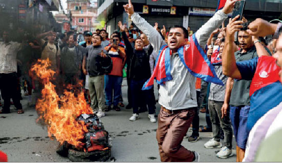 නේපාලයේ බරපතළ ජනතා විරෝධයක් පැතිර ගියේය. එය නිමා වූයේ අගමැතිවරයාට ඉල්ලා අස්වී ගෙදර යාමට පාර කැපෙමිනි. රටේ ජාතික සම්පත් විශාල ප්රමාණයක්ද විනාශ විය. කත්මන්ඩු අගනුවර තරු පහේ හෝටල් විශාල සංඛ්යාවක් ගිනිබත් විය. දේශපාලනඥයන් මග දිගේ ඇදගෙන යමින් ඔවුන්ගේ නිවාස ගිනි තබන අවස්ථා රාශියක් අන්තර්ජාලය තුළ පෙන්නුම් කළේය.