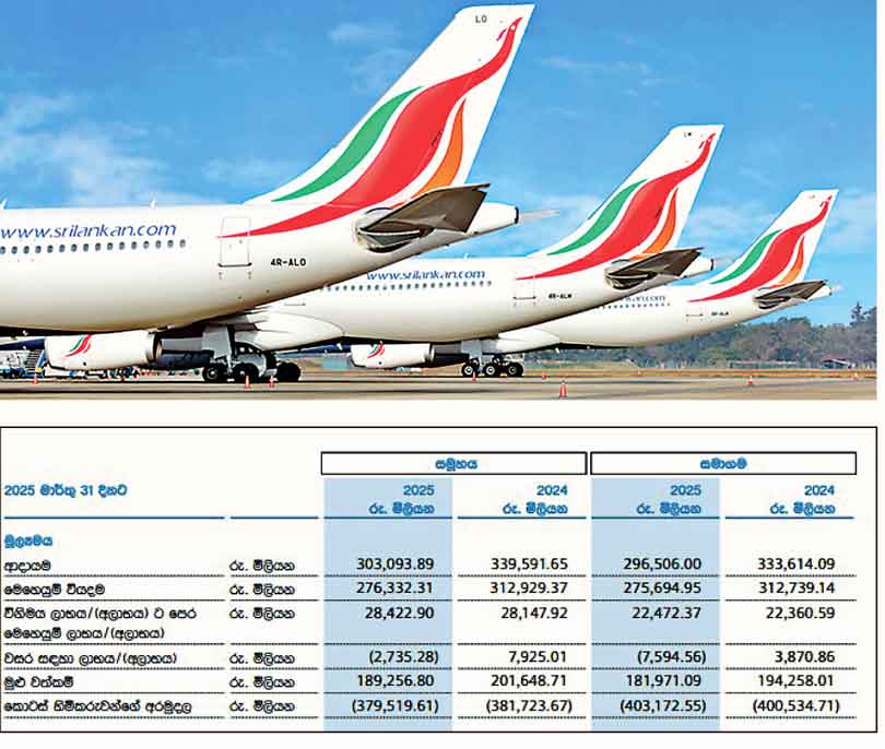 ඊට පෙර මූල්ය වර්ෂයේදී ශ්රී ලංකන් ගුවන් සේවය රුපියල් බිලියන 7.92ක ලාබයක් ලබාගෙන තිබූ අතර, ඊට සාපේක්ෂව 2024/25 මූල්ය වර්ෂයේදී ශ්රී ලංකන් ගුවන් සේවයේ ලාබය සියයට 134.6 කින් පහළ ගොස් ඇත. එහිදී 2024/25 මූල්ය වර්ෂයේදී ශ්රී ලංකන් ගුවන් සේවයේ ආදායම රුපියල් බිලියන 303 දක්වා සියයට 10.8 කින් පහළ ගොස් ඇති අතර 2023/24 මූල්ය වර්ෂයේදී ශ්රී ලංකන් ගුවන් සේවයේ ආදායම රුපියල් බිලියන 339.6 ක් විය.