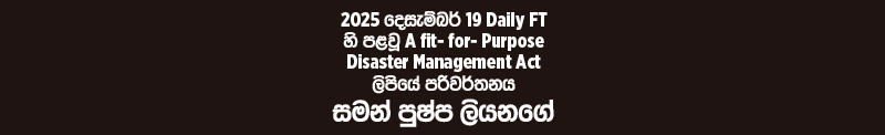 වර්තමාන ආපදා කළමනාකරණ පනත දෝෂ සහගත බවට ජනාධිපතිවරයා කළ ප්රකාශය. ආපදා අවම කිරීමේ වගකීම දරන අමාත්යවරයා ලෙස ඔහු කළ අතපසුවීම්වලින් අවදානම වෙනතක යොමු කිරීම උදෙසා කළ මවා පෑමක් විය හැකිය. එහෙත් ඇත්ත වශයෙන්ම ඔහු කී දේ වැරදි සහගත නොවේ. කළ යුතුව ඇති අන් සියලු දෑ පසෙක තිබිය දී අලුත් නීතියක් සකස් කිරීම පිළිබඳ දැන් කථිකාව පටන් ගැනීම ඉතා වැදගත්ය.