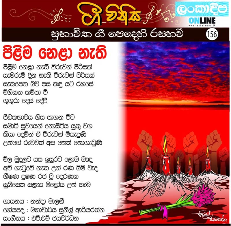 මෙි වනාහි නන්දා මාලනීයන්ගේ පවන කැසට්පටයේ එන විරෝධාකල්ප ගී ගොන්නේ ම තවත් අපූරු ගීමිණකි.එකල දුර්දාන්ත පාලකයෝ මෙි ගීත තහනම් කළෝ ය.එහෙත් රැඩිකල්වාදී අදහස් දැරූ තරුණයෝ පවන කැසට්ටුව පොල්ගසේ කරටියේ පවා සඟවාගෙන මෙි ගීත ඇසුවෝ ය.මෙි ගීතයට විෂය වන විරුවෝ සැබෑ මානවහිතවාදී සටන්කරුවෝ ය.ඔවුහු පුද්ගලාභිවන්දන තුට්ටුවකට මායිම් නොකළෝ ය.මෙි තරුණ විප්ලවවාදීහූ සමායේ අභිවෘද්ධිය, මානව ජීවිතයේ යහපත වෙනුවෙන් සටන් වැද දිවි පිදූවෝ වෙත්.පස් කඳු යට රහසේ සැතපී සිටින මෙබඳු විරුවෝ සමාජයේ පොදු ස්මරණයට පාත්ර වූවෝ ය.ඔවුහු ගම් නියම්ගම්වලින් සරසවි වරම් ලබා සෙයිලමට සේන්දු වූ තරුණ විද්යාර්ථිහු ය.මෙි සියලු සටන්වලින් සුවිශද වුයේ කුමක් ද? තරුණයන් තුළ ධනවාදයට සහ දුර්දාන්ත පාලකයන්ට එරෙහිව නැගුණු වෛරය යි.මෙි අප්රිය ජුගුප්සිත වූ වෛරී වූ තතු නිසා පීඩත පන්තියේ දුප්පත් අසරණ මවුපියන්ගේ උගත්, බුද්ධිමත් දරුවෝ ඊට එරෙහිව නැගී සිටියහ.එහෙත් මහා ඛෙිදවාචකයකින් අවසන් වූ මෙි සටන්වලට ත්රස්වාදී මුහුණුවරක් දීමට දුෂ්ට පාලකයෝ වැර දැරූහ.මෙකී තරුණයන් සමඟ උරණ වූ අධර්මිෂ්ට පාලකයෝ යටකී තරුණයන් ටයර් සෑ,වධකාගාරවලට යැවූහ.එම තරුණයන් මියගියේ රාජ්ය ත්රස්තවාදයේ කුරිරු වධබන්ධනයන්ට නතුවී මෙන් මිස වෙනත් අදිසි හස්තයකින් නොවන බව තතු දන්නෝ දනිති.මෙි මළවුන් පිරිස සරසවි අධ්යාපනය ලද උගත් තරුණ තරුණියෝ ය.මෙනයින් බලන කල මහැදුරු සුනිලුන් මෙි ගීතයෙන් සිහිපත් කරන්නේ ජනතා විමුක්ති පෙරමුණේ කැරලි දෙකේ දී මියගිය තරුණයන් බව නිසැකය.සමාජවාදී විභවය පෙරටුකර ගෙන ජන පීඩක රාජ්ය යන්ත්රයට පහර දී එයින් පහර කා වැනසී ගිය යටකී තරුණයන් පිළිබඳ මානවබන්ධුත්වයේ ප්රඥාලෝකය දැල්වීම සමාජයේ පරම යුතුකම නො වෙි ද?