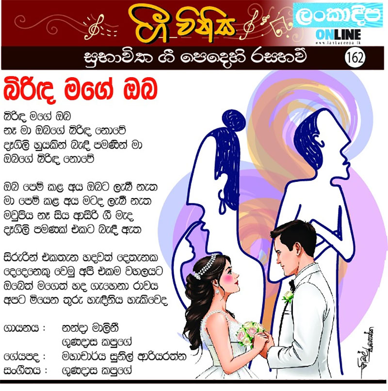 මෙි ගීතයේ කථකයා සහ කථකාව විප්රලම්භ ශෘංගාරය මතින් විවාහ ජීවිතයට අවතිර්ණ වූවෝය.ඔවුහු තවමත් අතීත ප්රේමය ගැන වදවෙති.අතීතයේදී සිහිනෙන් ගෑ සුවඳක් වැනි ඇසුරක් ඔවුහු අත්වින්දහ.එහෙත් එකී ප්රේමය ජයගැනීමට ඔවුහු අපොහොසත් වූහ.
