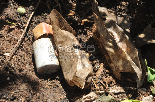 ඉඩමෙහි තිබී අත්බෝම්බ ලෙස සකසා තිබූ පුපුරන ද්රව්ය බහලූම් තුනක් සොයාගත් බවද පොලිසිය කියයි.