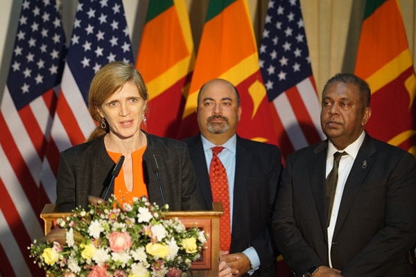 ජාත්යන්තරය හමුවේ කොන් වී සිටි ශ්රී ලංකාව හා එහි ජනතාව පිළිබඳ විශ්වාසය තබමින්, දුෂ්කර අවස්ථාවන්හිදී ඉදිරියට යෑම එක්සත් ජාතීන්ගේ සංවිධානයේ ඇමෙරිකා තානාපතිනිය වන සමන්තා පවර් මහත්මිය දැක්වූ සහාය සුවිශේෂී බව අමාත්ය ඒ මහතා වැඩිදුරටත් කීය.