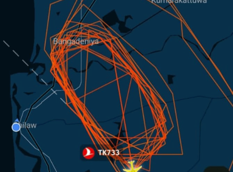 තුර්කි ගුවන් සමාගමට අයත් මෙම ගුවන් යානය ඇතිවු කාර්මික දෝෂයක් හේතුවෙන් හලාවත ඉහල අහසේ එහි පියාසර කරමින් ඉන්ධන ප්රමාණය අඩුකිරීම සදහා කටයුතු කළ බව ගුවන් හමුදා තොරතුරු වලින් පැවසෙයි.