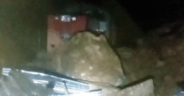 බදුලු දුම්රියට ගල් පර්වතයක් වැටේ