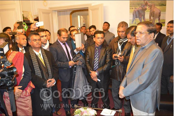 පසුගිය ජනවාරි 08 වැනි දා ජනපති වු ඔහුට යහපාලනයක් හා නව දේශපාලන සංස්කෘතියක් බිහි කිරීම උදෙසා පෙරමුණ ගත් විදේශ ගත ශ්රී ලාංකිකයන්ගේ පැරිස් එකමුතුවේ ශ් රීලාංකිකයන් මුණගැසී ඔවුන් ඇමතීමට ලැබීම ගැන සිය සතුට පළ ජනපති ඒ සඳහා ඉදිරිපත් වූ සැමට ස්තුතිය පිරි නැමීය. "පැරීසියේ සමුළුවට පැමිණි මෙම අවිවේකි අවස්ථාවේ හදිසියෙන් හෝ ඔබ මුණගැසීම මම ඉතා වැදගත් කොට සළකනවා. ශ්රි ලංකාවේ මෙන්ම එයින් පිටත විදේශ ගත ආයෝජකයන්, ශ්රමිකයන්, වෘතීකයින්, ව්යාපාරකයින්, ලෙස ඔබලා ගැන විශාල ගෞරවයක් තිබෙනවා. ලොකේ කොහේ හිටියත් ලාංකිකයන් ලෙස ඔබ සැම කරන මෙහෙවර ඉතා අගේ කොට සළකනවා."