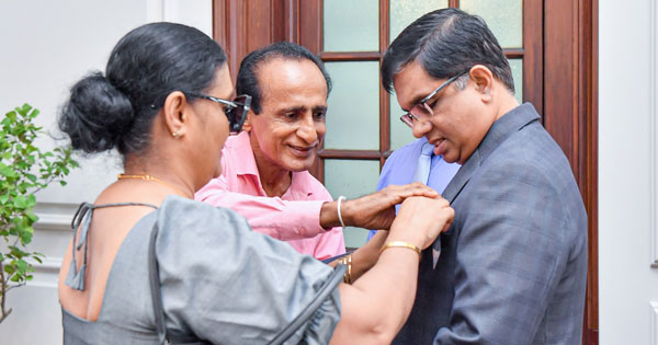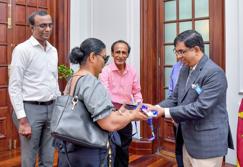 ශ්‍රී ලංකා දෘශ්‍යාබාධිත ජනතා සම්මේලනයේ සභාපති නිල්මිණි සමරවීර මහත්මිය විසින් කොඩිය ජනාධිපති ලේකම්වරයා වෙත පලඳවනු ලැබීය.