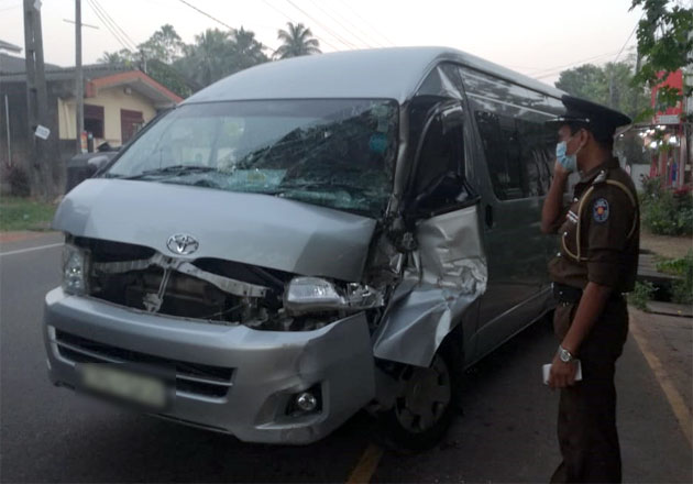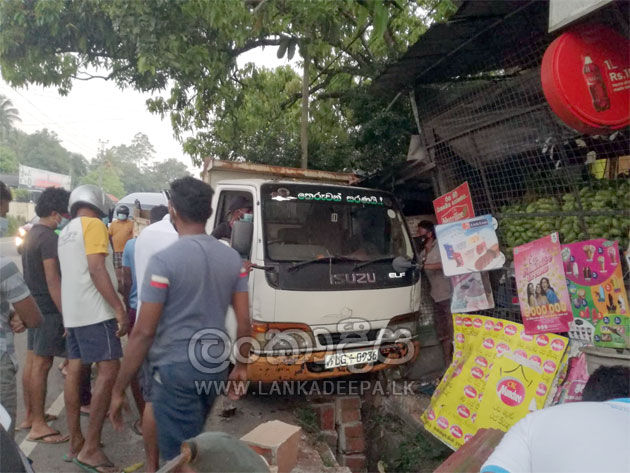 සුඛෝපභෝගී වෑන් රථය ලොරි රථයේ පිටුපස ගැටීමත් සමඟම ලොරි රථය ඉදිරියට ඇදී ගොස් නවතා තිබු යතුරු පැදියක සහ මාර්ගයේ ගමන් ගත් ගමන් ගත් පුද්ගලයකුගේ ගැටී අනතුරුව වෙළඳසැලකටද කඩා වැදී කාණුවකට වැටී නතරවී ඇති බව පොලිසිය කියයි .