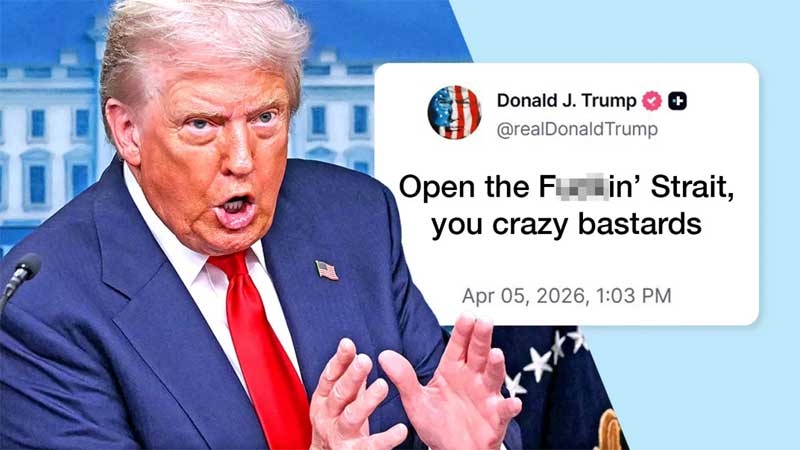 ‘අඟහරුවාදා දිනය ඉරානයට බලාගාර දිනය සහ පාලම් දිනය යන දෙකම එකට එකතු වූ දිනයක් වේවි. ඉරානයේ බලාගාර සහ පාලම් අප විනාශ කරනවා. මීට පෙර කිසිදා අත්විඳින්න සිදු නොවුණු ආකාරයේ විනාශයකට ඉරානයට මුහුණ දෙන්න වේවි. ඉක්මණින් හෝමුස් සමුද්‍ර සන්ධිය විවෘත කරපල්ලා, නැතිනම් නුඹලාට අපායේ ජීවත් වීමට සිදුවනු ඇත. අල්ලාහ් දෙවියන්ට ප්‍රශංසා වේවා’ යනු කුණුහරුප නොමැතිව, ට්‍රම්ප් ප්‍රසිද්ධියට පත් කළ එම පණිවුඩයයි.
