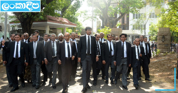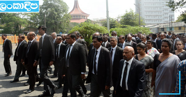 අධිකරණ නඩු කටයුතුවලට සහභාගි නොවූ ශ්රී ලංකාව නීතිඥ සංගමයේ සභාපතිවරයා ඇතුළු නීතිඥවරුන් ශ්රේෂ්ඨාධිකරණය ඉදිරිපිටට රැස්ව විරෝධය පළ කළේය.