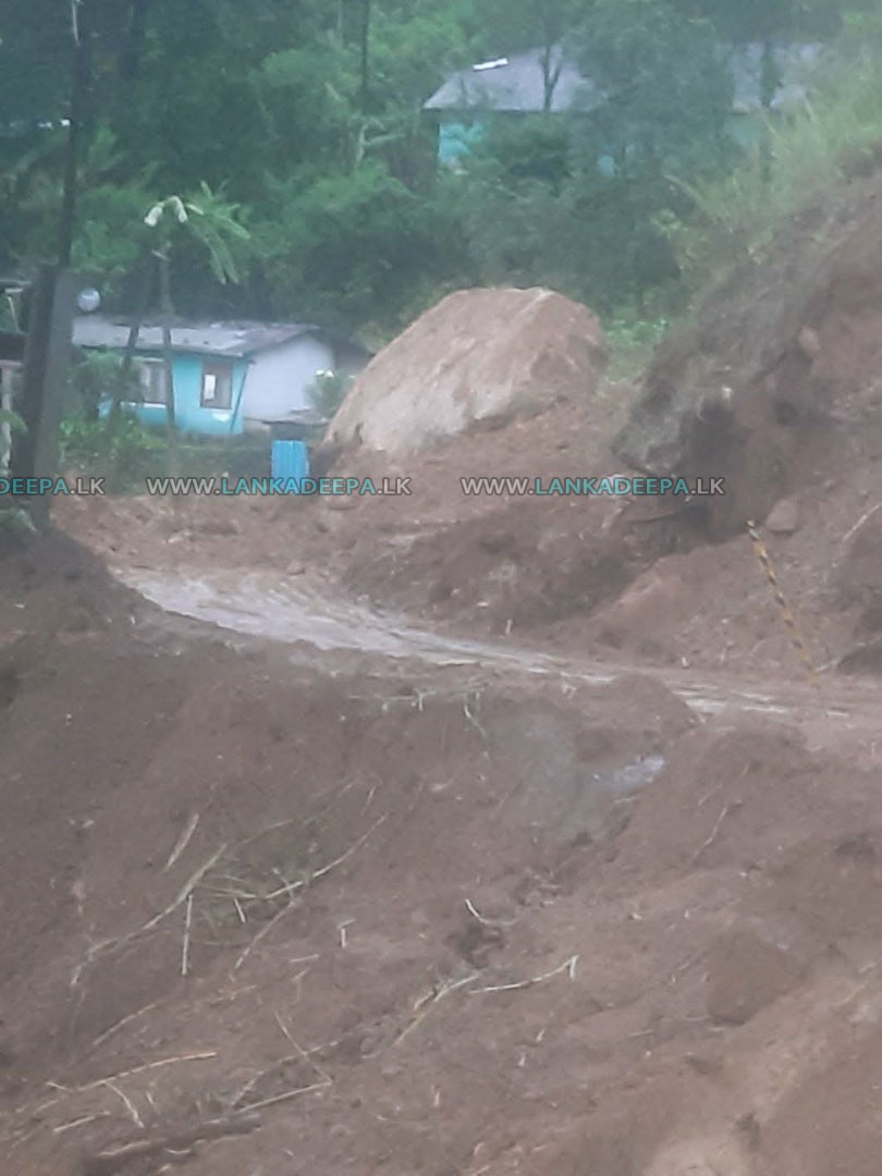 දැනට ඇදහැලෙන අධික වර්ශාවත් සමග මෙසේ මාර්ගයට විශාල ගල්පර්වතයක් කඩා වැටී ඇති බවත් පවතින වර්ශාවත් සමඟ තව දුරටත් පස්කදු කඩා වැටීමෙ අවදානම නිසාවෙන් එය ඉවත් කිරිමට අපහසු වී ඇති බවත් මාර්ග සංවර්ධන අධිකාරියේ විධායක ඉංජිනේරු බදුල්ල එස්.එස්. හෙන්නායක මහතා සදහන් කලේය .