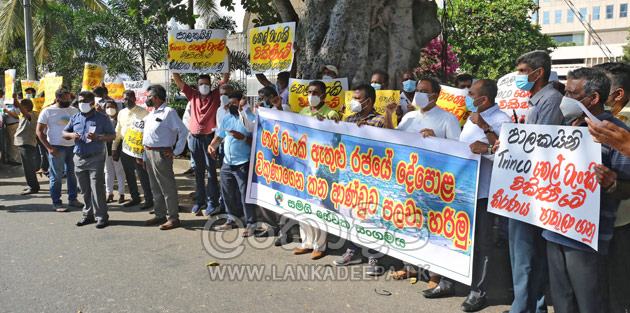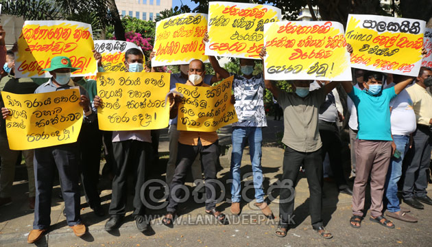 විරෝධතා පුවරු ප්රදර්ශනය කරමින් පිරිස පැයකට ආසන්න කාලයක් අමාත්යාංශය ඉදිරිපිට විරෝධතාවයේ නිරත විය.
