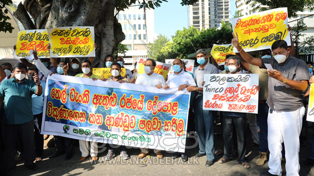 ඉන්ධන මිල ඉහළ දැමීම, ජීවන වියදම ඉහළ යාම, රටේ සම්පත් විකිනීමට එරෙහිව සමගි බලවේගයේ නියෝජිතයන් මුදල් අමාත්යාංශය ඉදිරිපිට විරෝධතාවයේ නිරතව සිටි අයුරු ඡායාරූපයේ දැක්වේ.