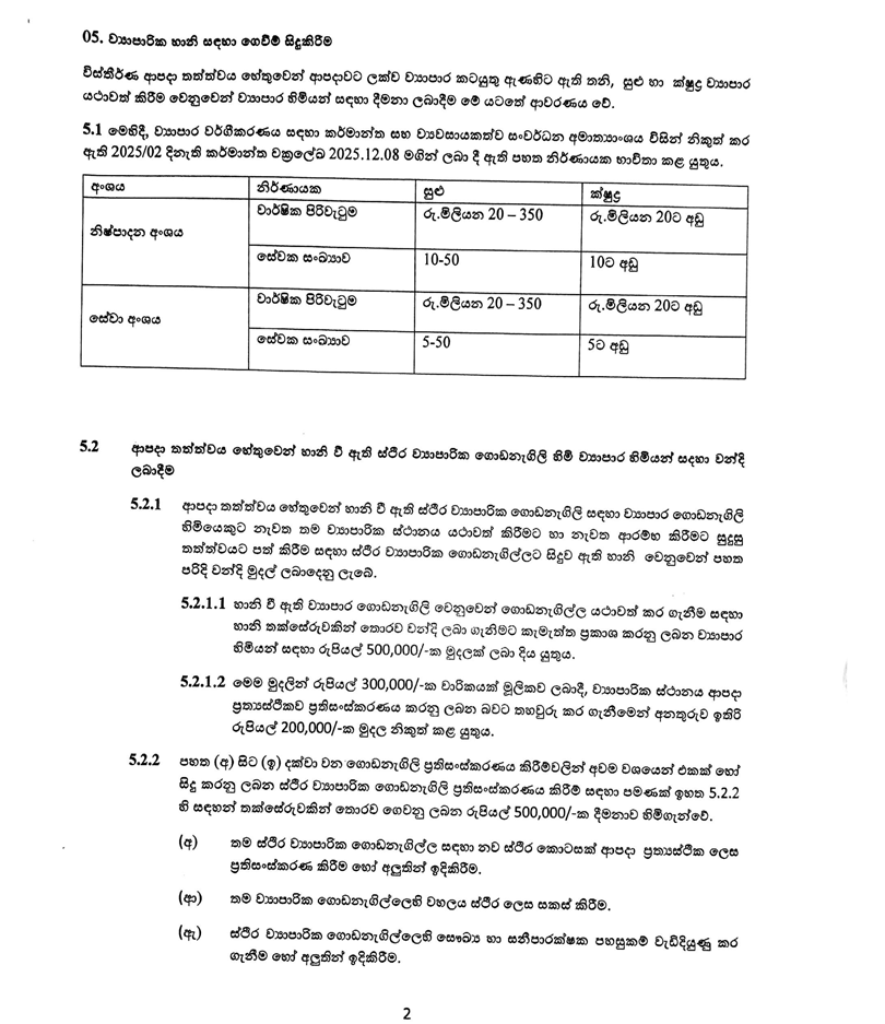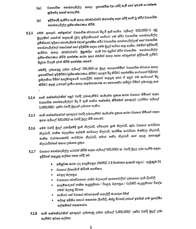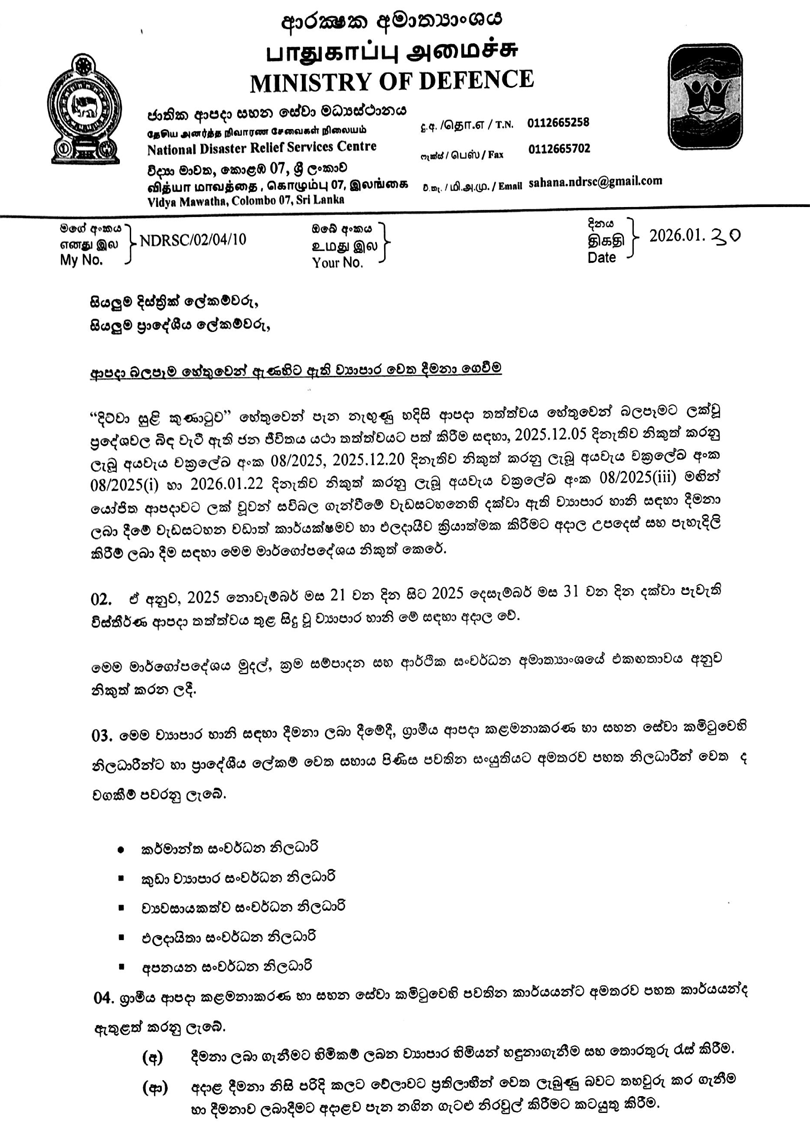 ආපදා බලපෑම හේතුවෙන් ඇණහිට ඇති ව්‍යාපාර සඳහා සහන සැලසීම පිළිබඳ නව චක්‍රලේඛයක් නිකුත් කර ඇත.