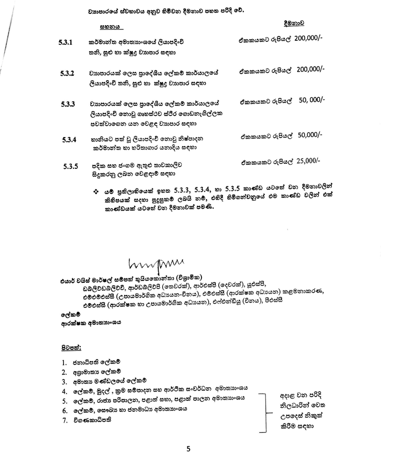 ආරක්ෂක අමාත්‍යංශ ලේකම් එයා වයිෂ් මාර්ෂල් සම්පත් තුයියකෝන්තා මහතාගේ අත්සනින් මෙම නව චක්‍රලේඛය නිකුත් කර තිබෙි.