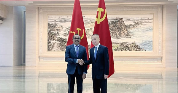 චීන නිල සංචාරයක නිරත ප්රවාහන මහා මාර්ග,නාගරික සංවර්ධන නිවාස අමාත්ය බිමල් රත්නායක මහතා සහ චීන කොමියුනිට්ස් පක්ෂයේ ජාත්යන්තර දෙපාර්තමේන්තුවේ ප්රධානී ලියූ හයිසින්ග් මහතා අතර හමුවක් චීනයේදී සිදුවිය.