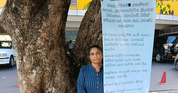 බම්බලපිටිය ආර්.ඒ. ද මෙල් මාවතේ මානව හිමිකම් කොමිෂන් සභා කාර්යාලය ඉදිරිපිට කරුණු හතකින් සමන්විත බැනරයක් ප්රදර්ශනය කරමින් මෙලෙස උපවාසය ආරම්භ කර ඇත්තේ ඇත්තේ මානව හිමිකම් නිලධාරිණි (2) තනතුර හිමි කාන්තාවකි.