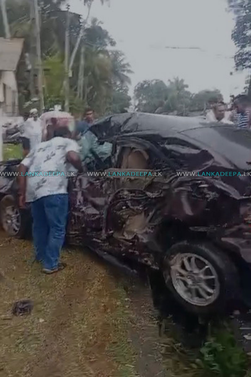 මෝටර් රථ දෙකක් එකම දුම්රියේ ගැටෙයි