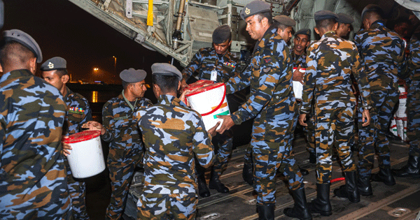 ටොන් 80ක් බරැති සනීපාරක්ෂක ද්‍රව්‍ය තොගයක් එම පරිත්‍යාගයට ඇතුළත් අතර ශ්‍රී ලංකා ගුවන් හමුදාව එම පරිත්‍යාගය බාර ගත්තේය.
