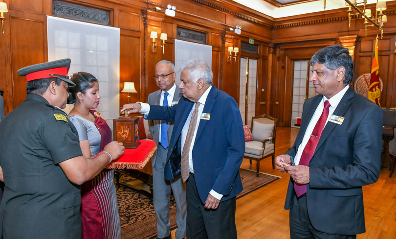 රණවිරු සේවා අධිකාරියේ සභාපති මේජර් ජෙනරල් නිශාන්ත මානගේ මහතා විසින් රණවිරු කොඩිය ජනාධිපතිවරයා වෙත පළඳවනු ලැබීය.