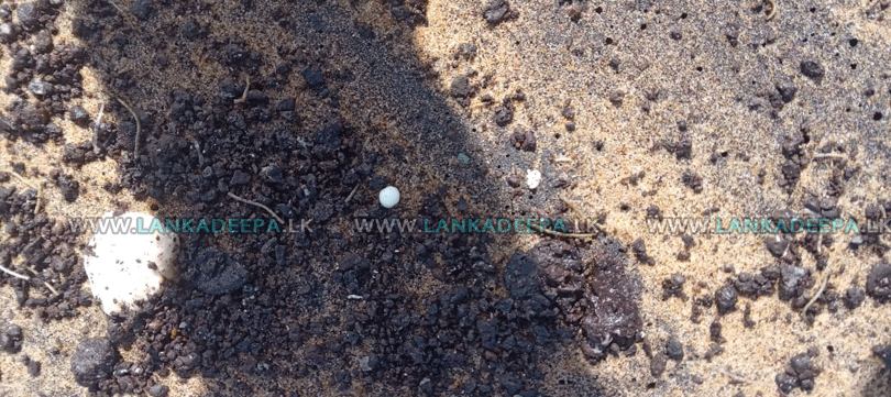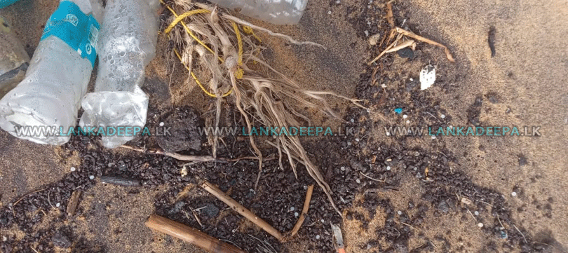 ඒවා වැලි සමග මිශ්ර විමත් සමග වෙරළ තිරයම කළු පැහැතින් අපවිත්ර වී ඇත.