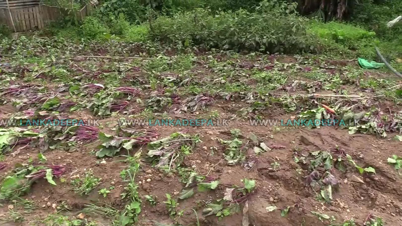 අර්තාපල්,තක්කාලි, බෝංචී, ගෝවා ,ලීක්ස් වගාවන් විශාල වශයෙන් විනාශ වී ඇත.