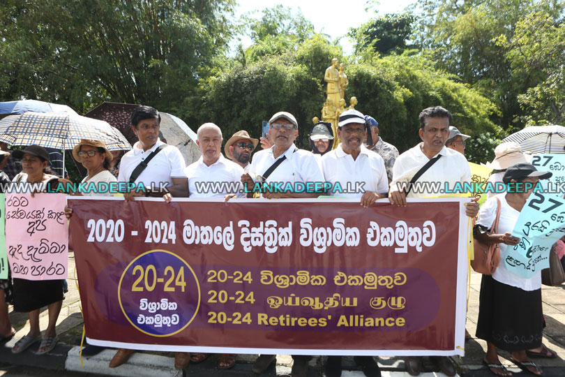 මෙම විරෝධතාවට මාතලේ, නුවරඑළිය, හම්බන්තොට ආදි රටපුරා විසිරී සිටින විශ්රාමිකයන් පැමිණ සිටි අතර ‘පොහොසත් රටක්, ලස්සන ජීවිතයක් 2020 - 2024 විශ්රාමික අපට අහිමිද?’ ආදි පුවරු අතැතිව ඔවුහු විරෝධය දැක්වූහ.
