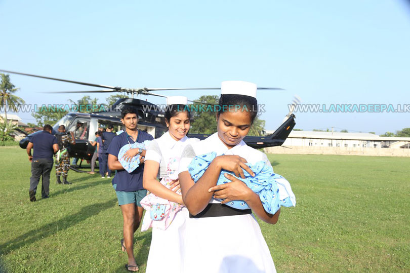 හලාවත මහ රෝහල දින ගනනාවක් තිස්සේ දැවැන්ත ජල කදකින් යටවිමත් සමග එහි සියලු කටයුතු මේ වන විට නැවති විදුලිය ද නොමැති තත්වයක් හමුවේ මෙලෙස බිළිදුන් හා දරුවන් හා ගැබිනි මව්වරුන් ඇතුළු පිරිස මෙලෙස ගුවන් මගින් පුත්තලම මූලික රෝහලට එවිමට කටයුතු කර තිබුණි.