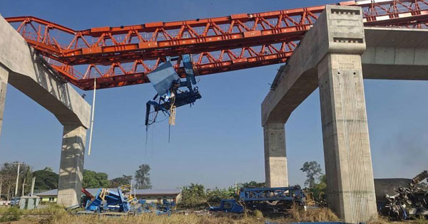 අධිවේගී දුම්රිය මාර්ගයක් සඳහා ඉදිකිරීම් කටයුතු සිදුවන ස්ථානයක් යටින් දුම්රිය ගමන් කරමින් තිබියදී ඉහළින් ක්‍රියාත්මක වූ දොඹකරයක් කඩා වැටී දුම්රියේ ගැටීමෙන් එක් දුම්රිය මැදිරියක් පීලි පැනීම සහ තවත් මැදිරියක් ගිනි ගැනීම නිසාවෙන් අනතුර සිදුව ඇති බව විදෙස් මාධ්‍ය වාර්තා කර තිබේ.