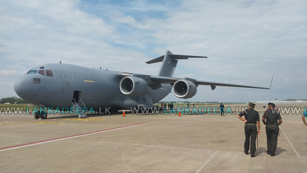 මේ සදහා එක්සත් අරාබි එමීර් රාජ්යයේ ගුවන් හමුදාව සතු සී.- 17 වර්ගයේ විශාලතම භාණ්ඩ ප්රවාහන ගුවන් යානයක් කටුනායක ගුවන් තොටුපොළ වෙත 12/51 ට පැමිණ තිබුණි .