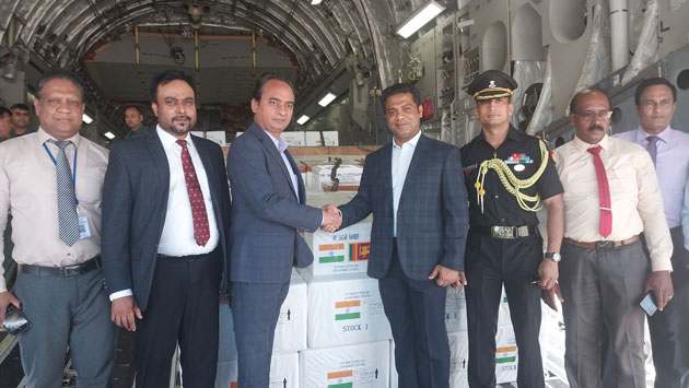 විපතට පත් වී සිටින ශ්රී ලාංකික ජනතාව සදහා බෙදා දීමට මෙට්රික් ටොන් 25 ක් බරැති ආපදා ආධාර තොගයක් රැගත් ඉන්දීය ගුවන් හමුදාවට අයත් ගුවන් යානයක් කටුනායක ගුවන් තොටුපොළ වෙත අද (14) පැමිණි අතර එම ගුවන් යානයෙන් මෙරට මහියංගනය ප්රදේශයේ ක්ෂේත්රගත රෝහලක සේවය කළ රෝහල් කාර්ය මණ්ඩලය ද ආපසු ඉන්දියාව බලා පිටත්ව ගියහ .