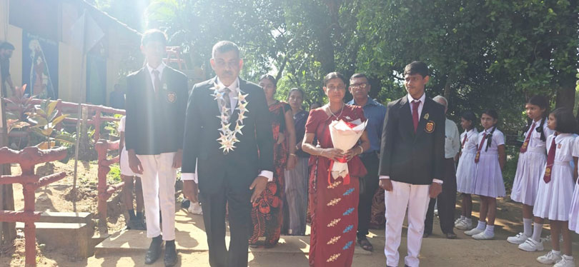 (විශ්රාම ලැබූ විදුහල්පතිවරයා විද්යාලයට කැඳවාගෙන එමින්)