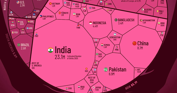 පසුගිය වසරේදී වැඩිම දරු උපත්වාර්තා වන්නේ ඉන්දියාවෙන් බව විෂුවල් කැපිටලිස්ට් වෙබ් අඩවිය පුරෝකතනය කළේය.