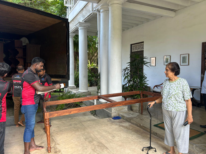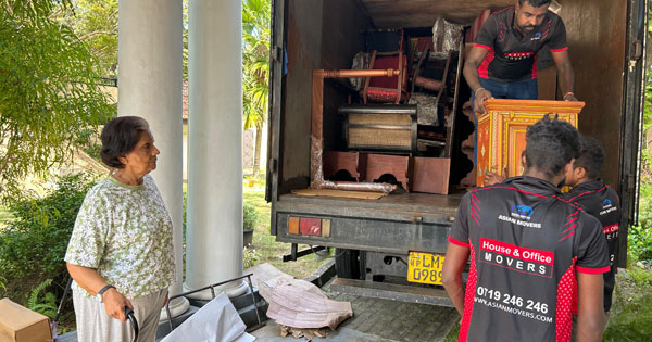 හිටපු ජනාධිපතිනී චන්ද්රිකා බණ්ඩාරනායක කුමාරතුංග මහත්මිය කොළඹ නිදහස් මාවතේ පිහිටි නිල නිවසින් ඉවත්වීම සඳහා බඩු මුට්ටු ඉවත් කරගනිමින් සිටින්නීය.