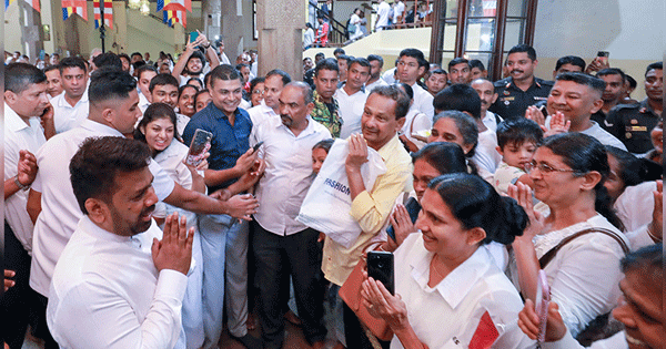 ඓතිහාසික දළදා සමිඳුන් වැඳ පුදා ගැනීමෙන් පසු දළදා මාලිගාවට සැදැහත් ජනතාව සමගද සුහද කතාබහක නිරත විය.