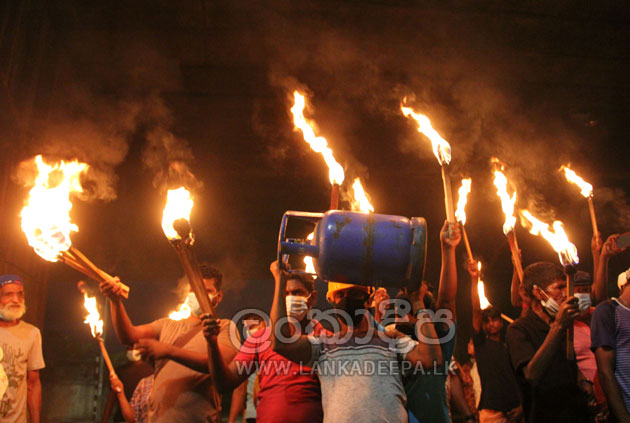 විරෝදතාකරුවන් පන්දම් දල්වමින්, ගෑස් සිලින්ඩර රැගෙන එමින් සටන් පාඨ කියමින් ගුවන් පාලම අසල රාත්රී 7.00 සිට පැයක පමණ කාලයක් විරෝධතාවයේ නිරත වූහ.