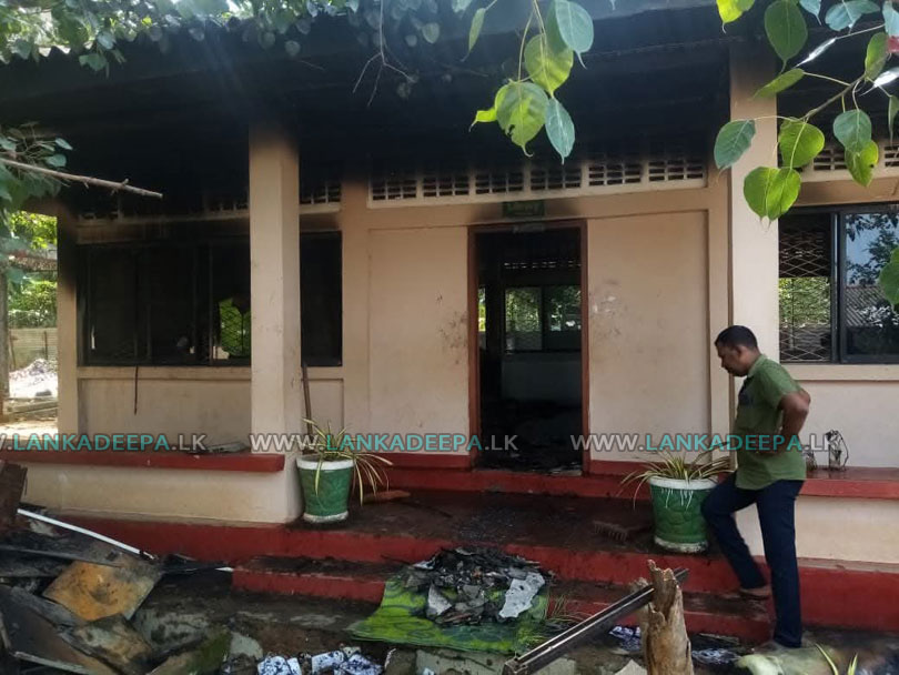 අභිනව විදුහල්පතිවරයා අද (06) උදැසන රාජකාරි භාරගත් බවට ලොග් සටහන් යොදා උදෑසන ආගමික වතාවත් වලින් අනතුරුව සිසුන් ආමන්ත්රණය කරද්දී පුස්තකාලය මෙලෙස හදිසියේ ගිනිගෙන තිබේ.